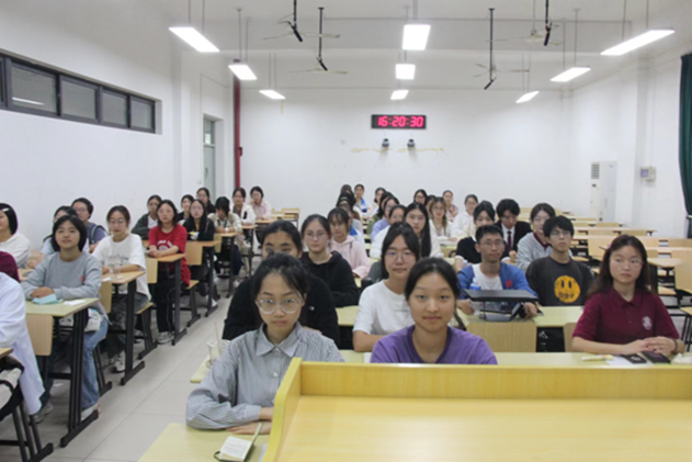 学院党委副书记、副院长金钧老师为同学们讲授第一堂党课“以实际行动争取入党”。金钧老师分享了自己高中时拜访一位老党员同志时的经历,谈到了在与老党员同志交流过程中的领悟——入党并不简单,对党的承诺要用一生去践行。她殷切嘱咐全体学生明确入党动机,真正做到全心全意为人民服务,并且希望各位同学能对标党员标准,落实到实际行动中。除此之外,金老师还鼓励大家“以学为本”“珍惜时间”“珍惜机遇”“不断提高综合素养”。同学们认真聆听金老师的教诲,认真记录,思考个人与党组织的关系,收获颇多。
