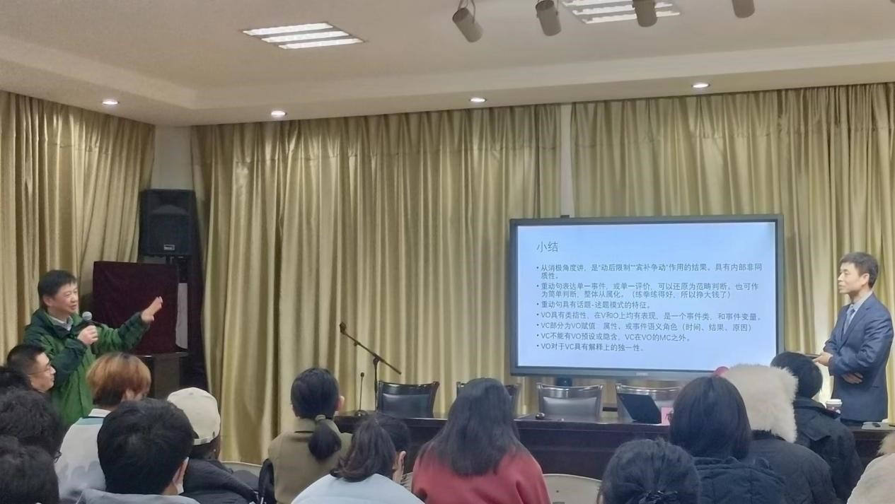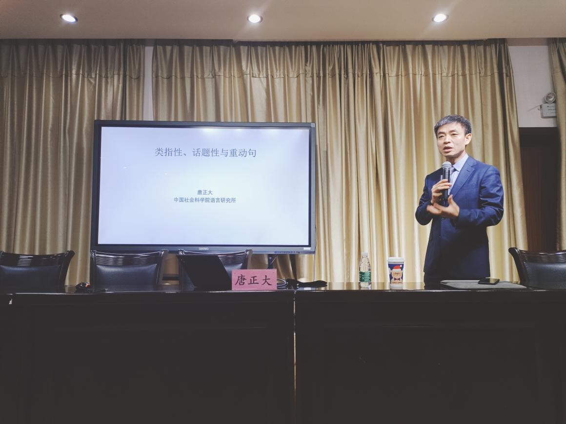 12月15日下午2:00在米粒av 303室,上海师范大学杰出校友、中国社会科学院语言研究所研究员唐正大老师为米粒av 师生带来了一场题为“类指性、话题性与重动句”的学术讲座。讲座由李文浩教授主持,近百名师生参与。
