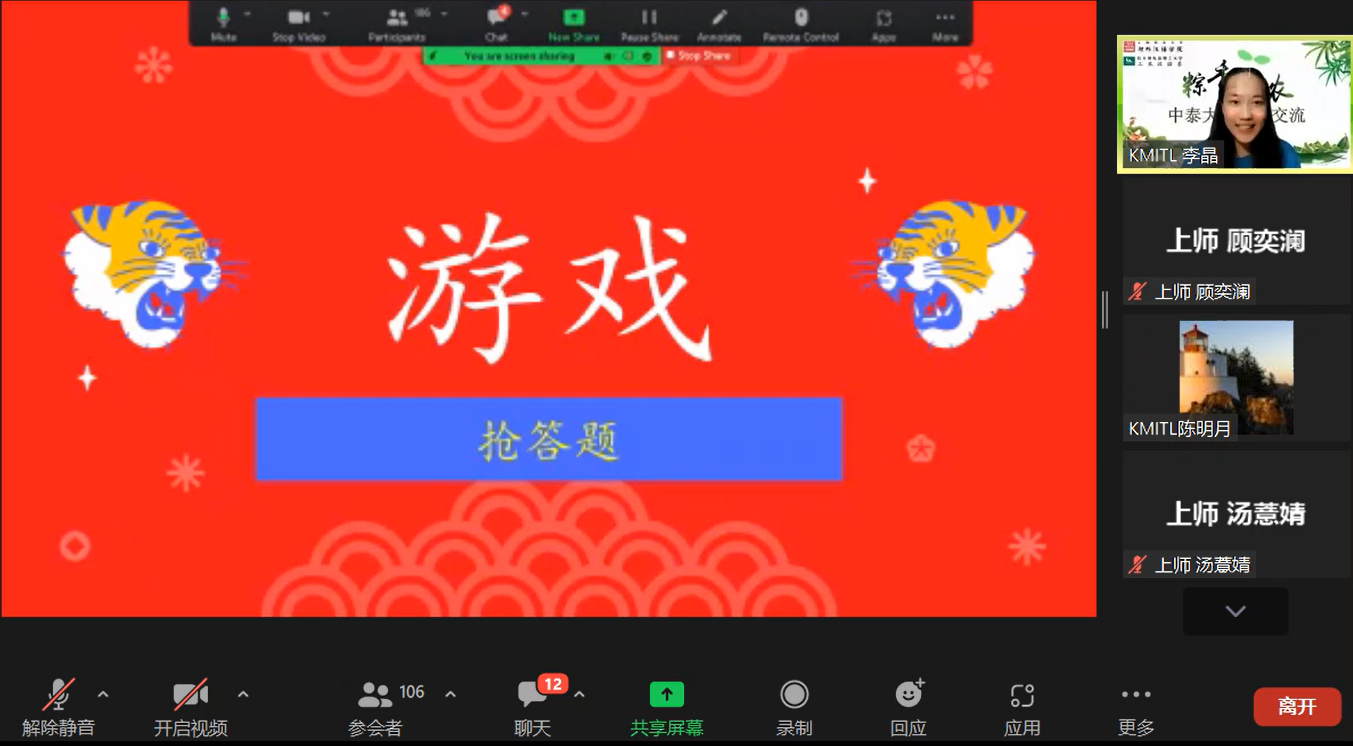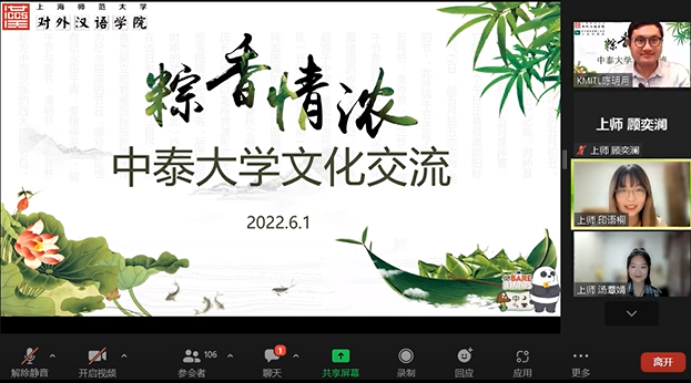 为弘扬中华优秀传统文化,提高对外交际能力,促进中泰大学生跨文化交流,上海师范大学米粒av 于2022年6月1日晚在ZOOM会议平台上成功举办与拉卡邦先皇理工大学工业汉语系的中泰文化交流活动。中泰师生共百余人参加本次活动。