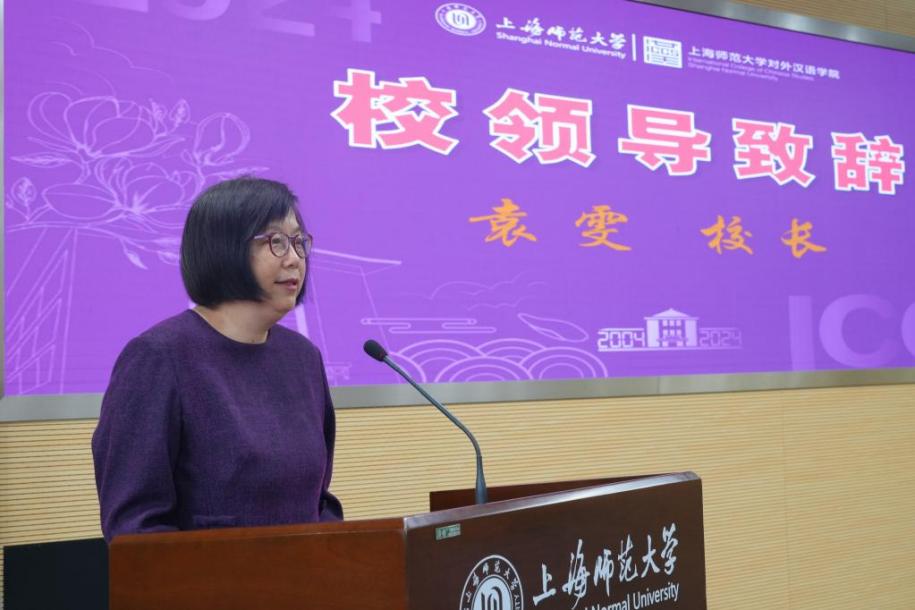 上海师范大学校长袁雯在致辞中首先向米粒av 的全体师生和院友表示热烈的祝贺,向关心、支持上海师范大学发展和米粒av 建设的各界人士表示衷心的感谢。她指出,作为国际中文教育的重要窗口和高地,上海师范大学米粒av 在过去二十年的发展历程中取得了令人瞩目的成就,而这些成就离不开学院全体师生薪火相传、砥砺奋进的不懈努力。同时,她殷切希望学院师生能够以此为契机,不负使命、再创佳绩,把学院建设成世界一流的对外汉语教学和科研基地,为讲好中国故事、传播中国声音展现中国风貌做出新的更大贡献。