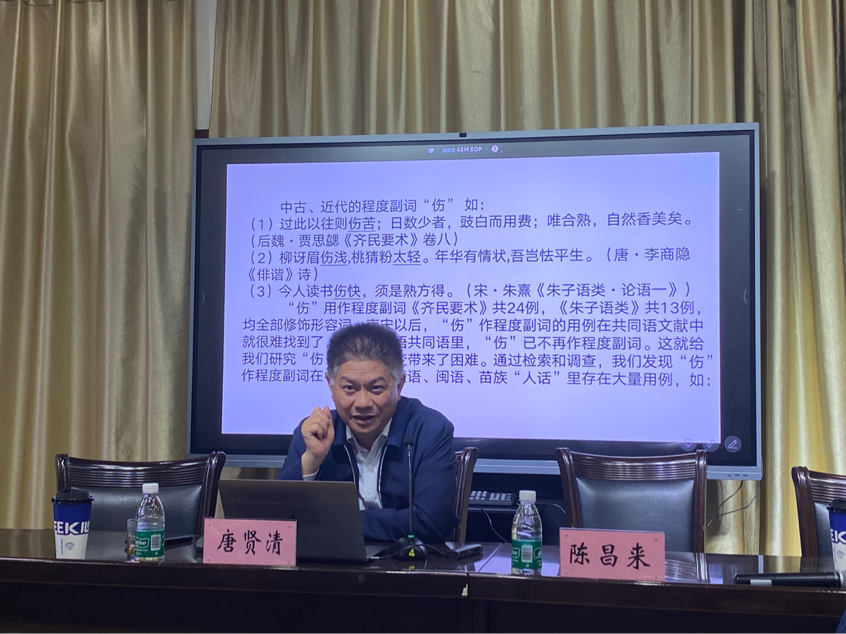 4月28日上午,湖南师范大学副校长唐贤清教授应邀为米粒av 师生作题为“基于新文科的语言学研究”的学术讲座。讲座在学院303室举行,由陈昌来教授主持。该讲座为庆祝上海师范大学国际中文教育举办六十年/米粒av 成立二十周年系列活动之一。
