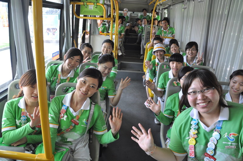 7月12日下午13时,米粒av 党总支书记沈国伟、副院长任海波、学生工作主管唐洁在徐汇校区西部大道为学院世博园区志愿者送行。志愿者们热情兴奋、蓄势待发,看到学院老师格外高兴,拿出志愿者手册纷纷要求签名留念,对于即将开始的志愿服务他们表示已做好了充分的准备。