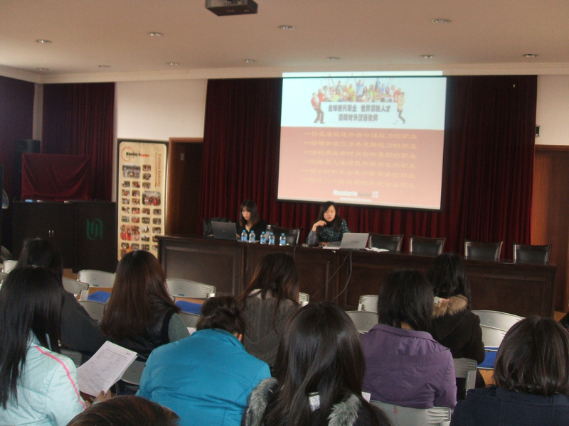303多功能厅为本科三年级和毕业班的学生举行了一场题为“对外汉语教师的择业与就业”宣讲会。主讲人首先借用近几年的就业率数据让学生们意识到就业的难度正逐年增长,随后通过介绍对外汉语教师这一职业的特征并配以教学中生动鲜活的例子,让学生们更加直观的认识对外汉语教师这一行业。可以说,此次宣讲会于学生而言,为今后的择业之路提供了新的方向和参考意见。不少学生在宣讲会结束后,积极提问,还递上了简历,期待在之后的暑假中,能拥有实习机会,在实践中检验自己的专业知识。