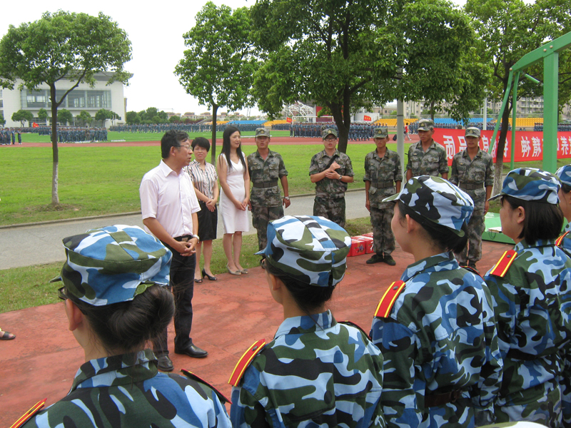 | 2012年9月7日下午,米粒av 院长齐沪扬、学生工作负责人唐洁及马克思主义学院党总支书记单冠初、副书记潘文岚一行四人来到奉贤校区军训训练场慰问二团二十连的全体教官及新生。 四位学院领导给教官们送上了慰问品,对教官们多日以来不辞辛劳、尽心尽力地训练新生表示衷心的感谢。随后,各位领导对2012级新生给予了军训寄语,鼓励他们不怕困难、不怕辛苦,勇往直前,咬紧牙关,坚持到最后,圆满完成进入大学后的第一次考验。虽然连日来的军训强度比较大,但同学们仍然一个个精神饱满,在领导及老师的鼓励和关心下,大家更是显得热情高涨,相信军训这段特殊的经历必定会深深地留在他们的记忆深处。