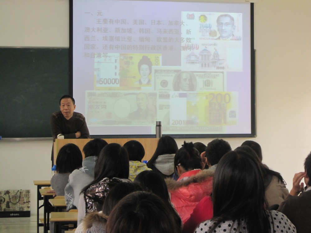 为了增强学生的专业能力,拓展学生的国际视野,学院于2012年11月14日在奉贤校区五教B座204为低年级的本科生举办了一场关于世界各国钱币知识的讲座。