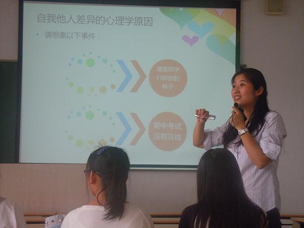 | 5月14日下午1:30,米粒av 在奉贤校区三教401举办了一场心理健康讲座,主讲人为生环学院的心理辅导员张葳老师,参与此次讲座的有米粒av 大一大二的寝室长,主要讲授的内容是大学生寝室关系处理及危机干预。 讲座的开始,老师先进行了一个小活动,她让同学们先在一张纸上写下三个形容自己的词,随后与旁边人互换,让旁边人写下三个词来形容自己,再与自己所写下的进行比对。接着老师又向同学们介绍了几种不经意的小动作、小行为所折射出的心理活动,让同学们对于图片上人的笑容进行真假判断,并且列举了一些情形向同学们询问对此的看法及做法。之后又让同学们分组讨论分析了四种心理现象,同学们纷纷提出了自己见解看法,现场气氛十分的热烈。最后,老师跟同学们谈了危机干预的相关知识,向同学们说明了一些具有自杀倾向的言语及动作,提醒同学们要对周围人的这种举动提高警惕,同学们纷纷表示已牢记在心。 通过此次心理健康讲座,学院的寝室长们对处理寝室内部矛盾多了一些理论知识,同时也让大家了解了如何识别并正确处理大学校园中发生在自己周围的一些心理危机事件。讲座后同学们纷纷表示从此次讲座中学到了知识,也更加懂得如何让寝室变成一个和睦的小单元,让同学相处不再困难。