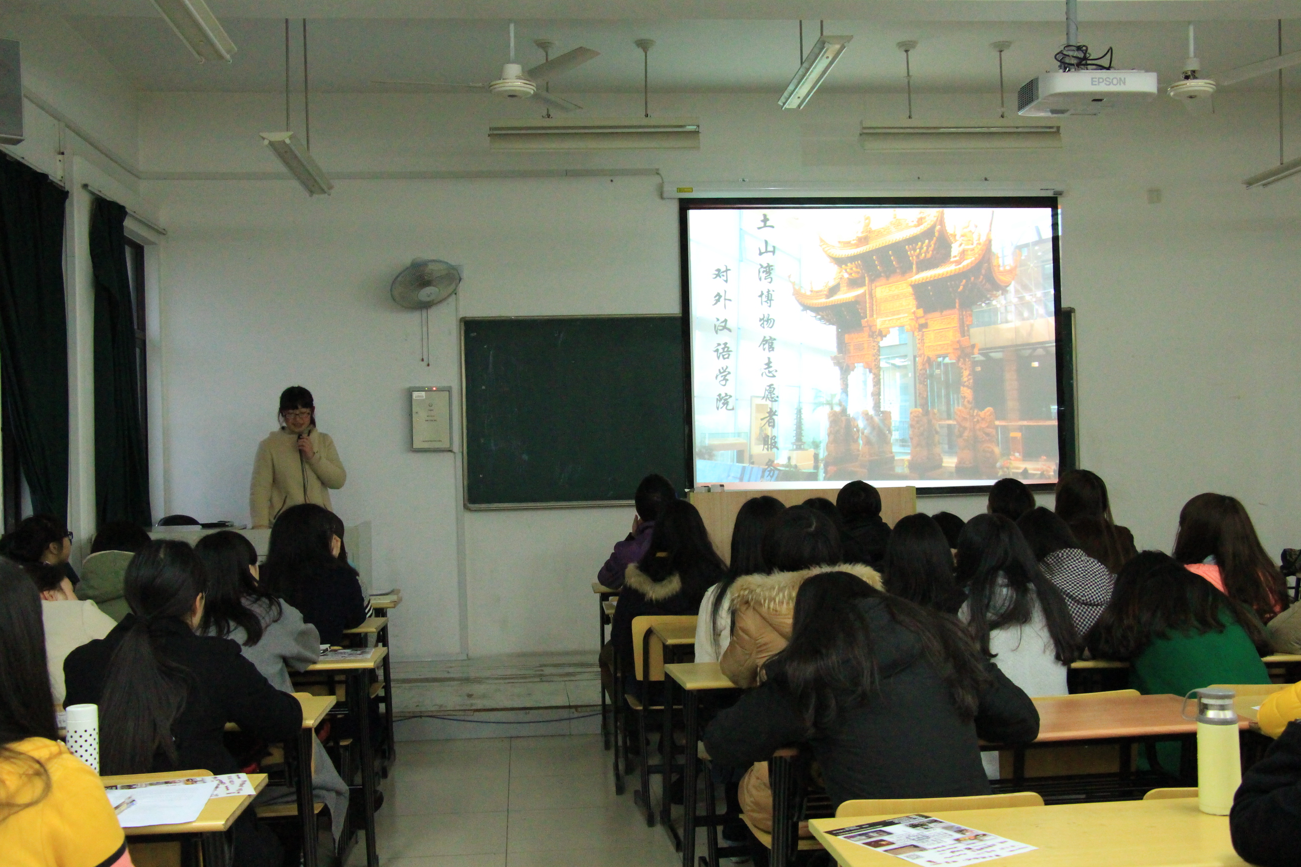 团委在五教举行了2015年寒假社会实践总结会暨暑期修学游宣讲会。学院院长曹秀玲、团委书记蔡俊杰、兼职辅导员姜涵澄及奉贤校区全体本科生参加了会议。 会议共分为三个部分,首先是寒假社会实践总结及表彰。2014级学生葛佳俐和钟雨岑分别对土山湾博物馆志愿服务情况和长宁区新泾镇爱心学校开展情况进行了总结。在今年寒假中,学院中外学子共同参与社会实践,不仅给社会送去了关爱和温暖,学生自身也在其中获得了不一样的经历和感受。接着,院长曹秀玲教授为表现突出的10位优秀志愿者颁发了米粒av