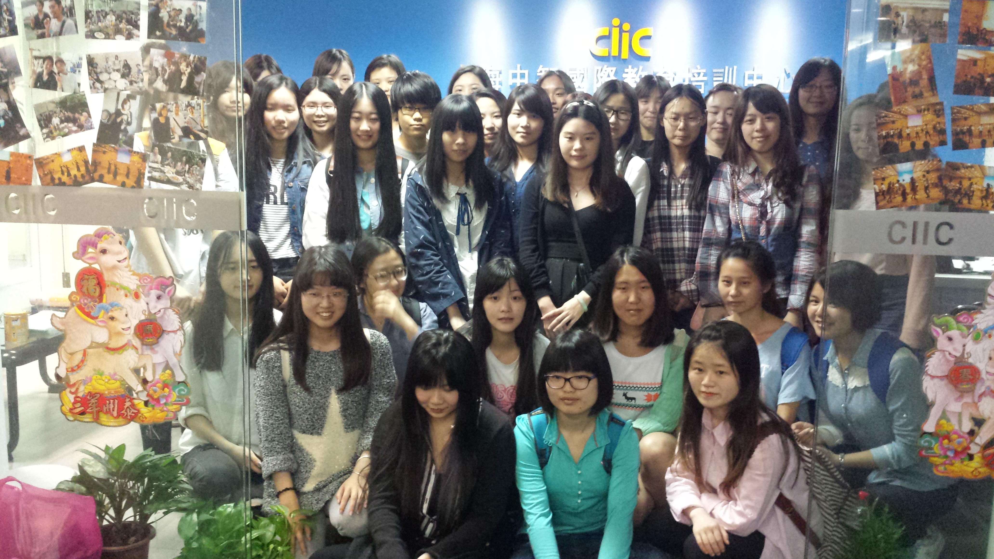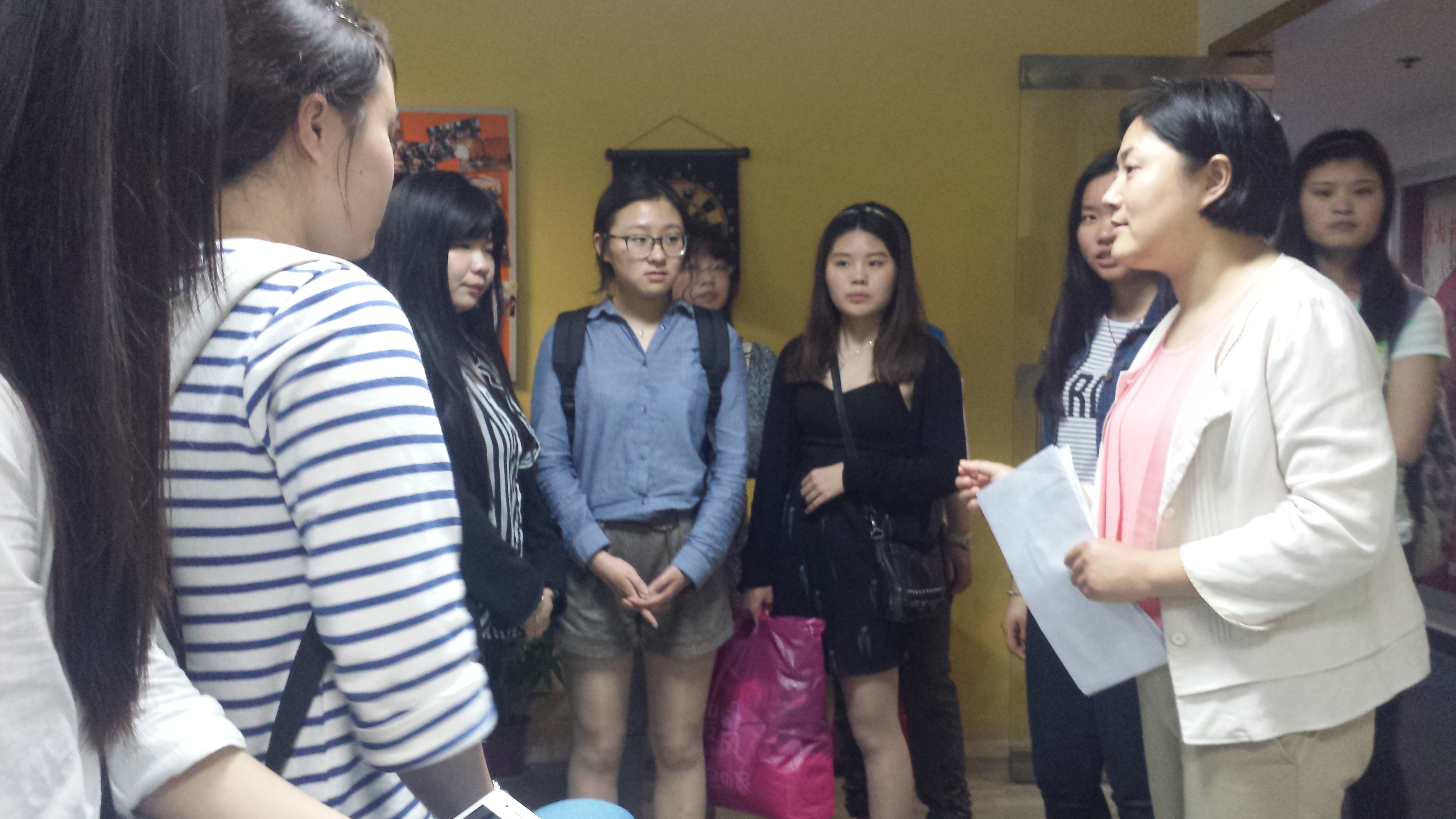 下午2点左右,奉贤区大一和大三的学生跟随老师乘车到达中智国际教育培训中心。首先,负责接待的老师在会议室为本科生们播放了中智总公司的介绍视频短片,并且做了一个简单的汉语培训中心的宣讲。其次,培训中心有着长期教学经验的老师结合自己的日常教学,与现场同学交流了自己关于如何做好一名汉语教师的看法。她提出要有制作多媒体课件和调控大班课堂的能力,并建议同学们从日常生活中搜集素材,做个有心人。本科生们受益匪浅。之后同学们又实地参观了培训中心的一对一的小型教学室,进一步体验了对外汉语培训机构的教学模式和高校、中学等教学单位留学生教学模式的区别。最后中心负责人接受了有兴趣在此实习的同学的简历。