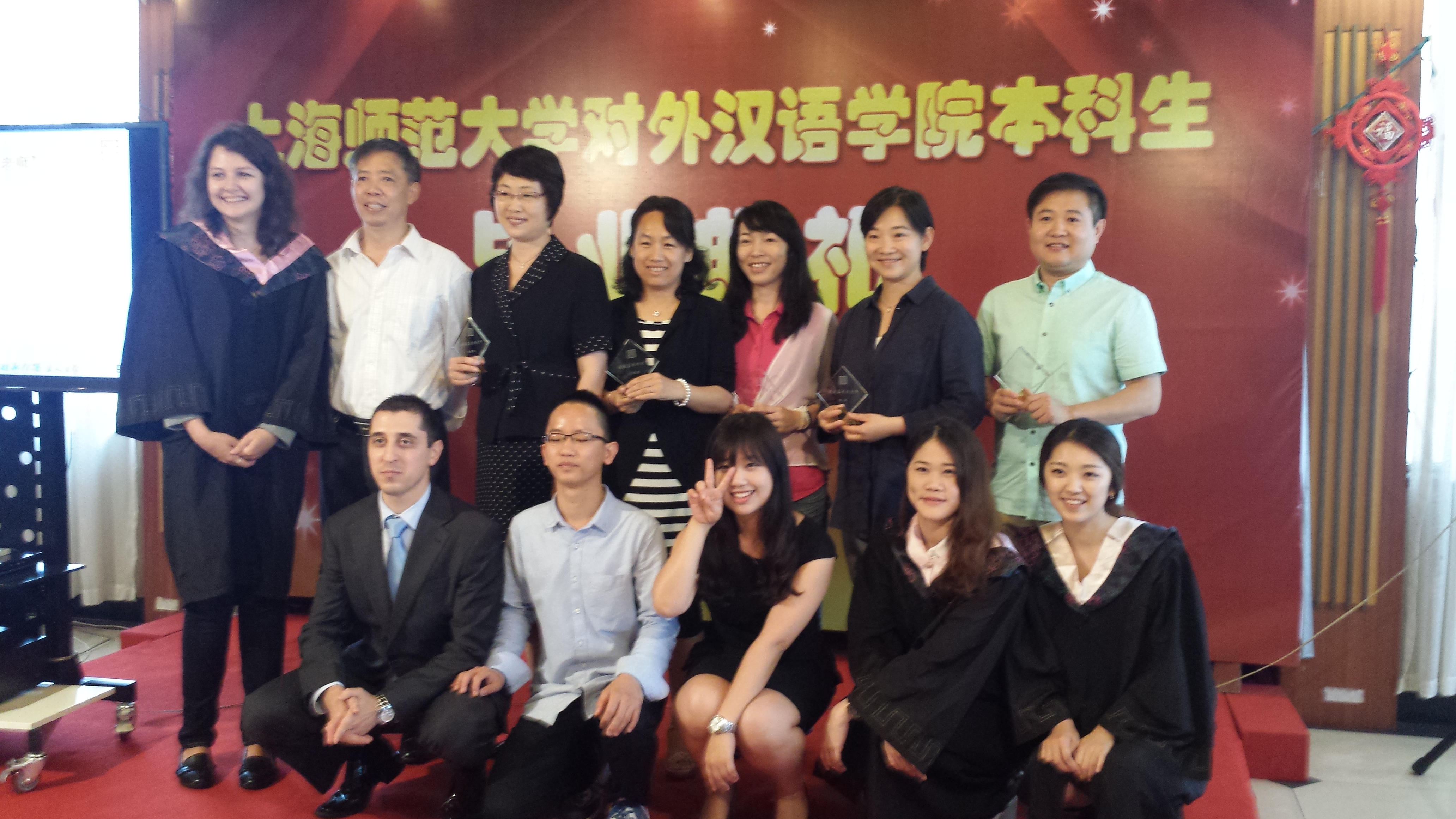 本科生毕业典礼隆重举行,学院20多名教师代表和来自7个国家的34名留学生本科生以及38名中国本科生参加了活动。典礼由来自中国和意大利的两位本科毕业生共同主持。 在毕业典礼上,首先优秀学生颁奖仪式,中外本科专业负责人分别向5位优秀留学生毕业生和8位中国优秀毕业生颁发证书。随后举行了“最喜爱的教师”颁奖仪式。留学生们共评选出了6名“我最喜爱的教师”,当主持人念出这些老师的名字并邀请老师们上台领奖时,平日里儒雅大方的老师都露出了惊喜的表情。6名留学生代表捧上精心制作的奖牌,一一向自己喜爱的老师鞠躬并颁奖,现场响起了热烈的掌声。