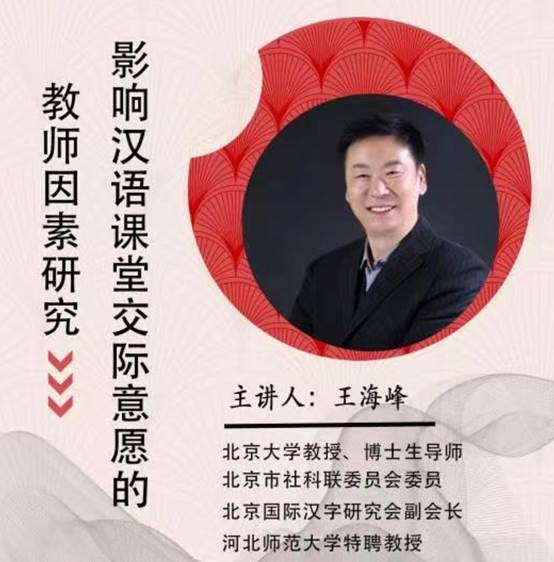 10月15日下午,北京大学教授、博士生导师,北京市社科联委员会委员,北京国际汉字研究会副会长,河北师范大学特聘教授王海峰应邀为米粒av 师生带来了一场题为《影响汉语课堂交际意愿的教师因素研究》的专题讲座。讲座吸引了米粒av 众多师生及不少外校师生参与。为配合疫情防控,本次讲座以线上形式进行,米粒av 院长曹秀玲教授主持。