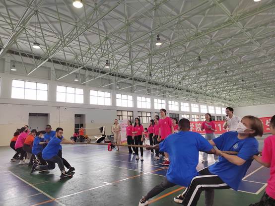 比赛现场气氛热烈,同学们齐心协力、各显奇招、奋勇拼搏,赛场边加油声、欢呼声此起彼伏。经过激烈地角逐,国际学生班主任李雪带领的第一队力压群雄,获得本次趣味运动会的第一名。