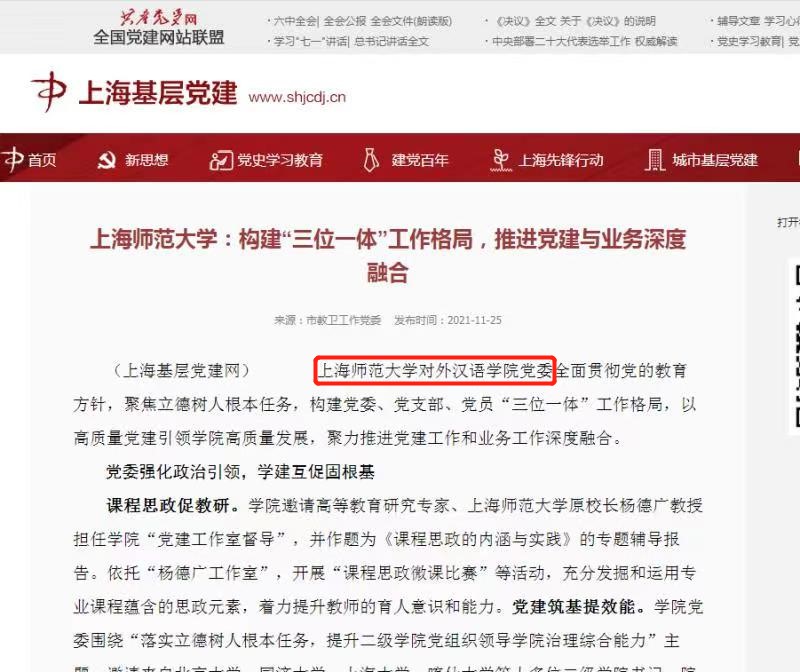 11月25日,上海基层党建网以“上海师范大学:构建‘三位一体’工作格局,推进党建与业务深度融合”为题,米粒av专题报道了米粒av 党委、党支部、党员在深度融合党建工作和业务工作方面的经验成效。