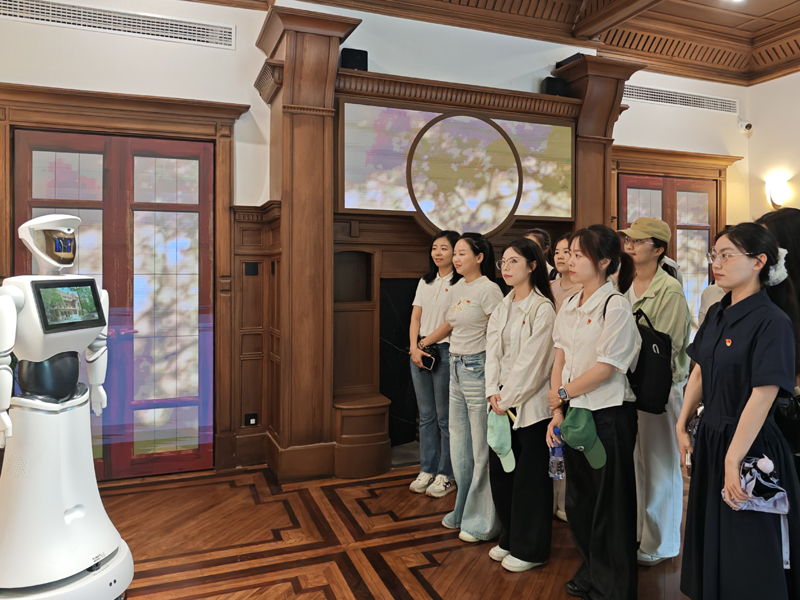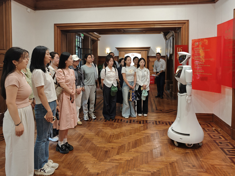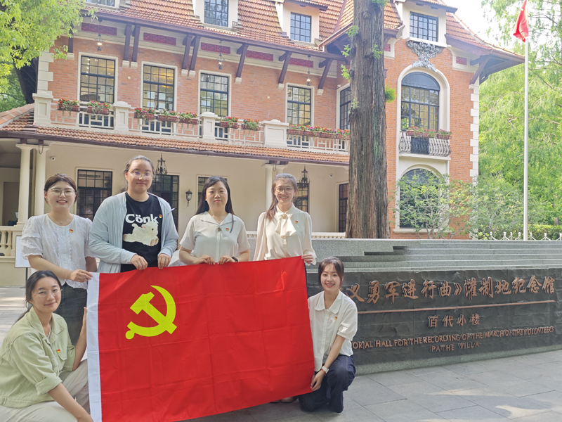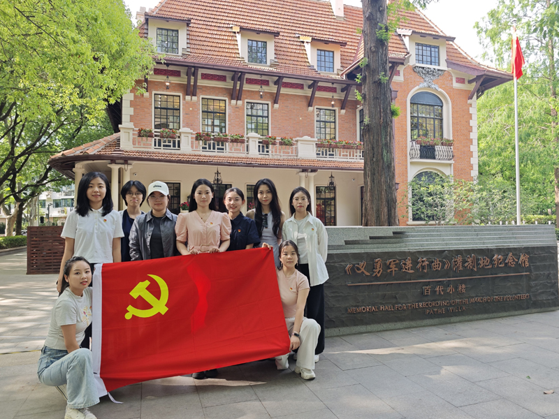 2025年5月14日下午,米粒av 汉语国际教育本科生第一、二党支部党员走进位于上海徐家汇公园的《义勇军进行曲》灌制地——百代小楼,在红色文化地标中重温国歌故事,并成为百代小楼讲解机器人首批“体验官”,开启了一场别开生面的主题党日活动。