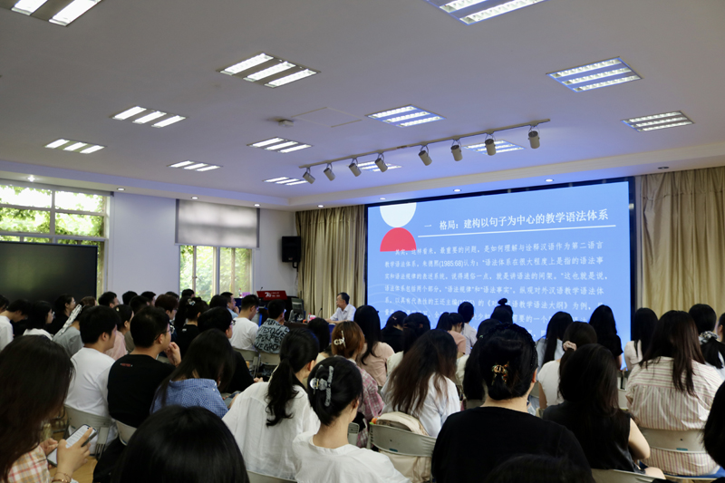 齐沪扬教授的讲座以《教学语法体系和语法教学——对“格局+碎片化”的再次解读》为题,强调“格局+碎片化”在教学语法体系建构过程中具有很大的启发和指导作用。齐沪扬教授从“语法格局”的角度出发,指出建构汉语作为第二语言教学语法体系的迫切性,主张以句子为核心建构大纲的框架,认为语法大纲应当在实践性、有序性、针对性上体现“格局”的思想。随后,齐沪扬教授从“碎片化语法”角度出发,指出汉语教学语法应当是“讲条件的语法”,应当用“讲条件”来确保语法教学的规范性与系统性。最后,齐沪扬教授将“语法格局”和“碎片化语法”结合起来,指出应构建将汉语放在世界语言大背景下的,科学、全面、系统的对外汉语教学语法体系,这是检验汉语作为第二语言教学的语言研究水平的重要标志,对建立汉语语言体系具有重要的理论价值。