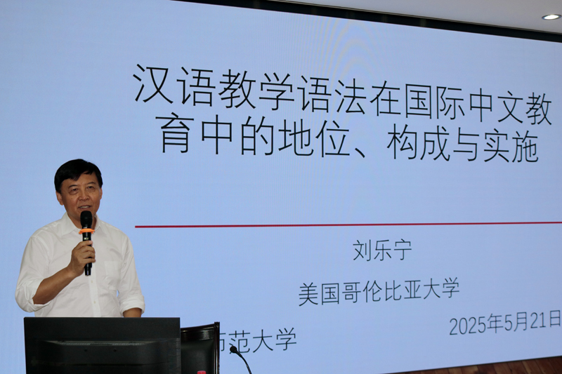 刘乐宁教授的讲座以《汉语教学语法在国际中文教育中的地位、构成与实施》为题。讲座认为,教学语法是国际中文教育的核心内容,因为教学语法反映着中文的语言结构与功能,反映着特定学习者人群的习得需求。刘乐宁教授还表示,教学语法的构建应当做好吸收、转/深化、应用工作,做到准确、简明、好/够用,并通过教学实例进行了深入说明。讲座最后,刘乐宁教授指出,国际中文教育的教学语法必须是语别化的,对汉语结构的描写和解释不应排斥当代主流语言学的概念和理论框架,应坚持从汉语的语言事实出发,不盲从,不削足适履。