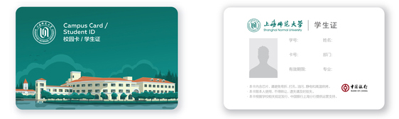 上海师范大学校园卡包含在校身份证明及电子支付功能。