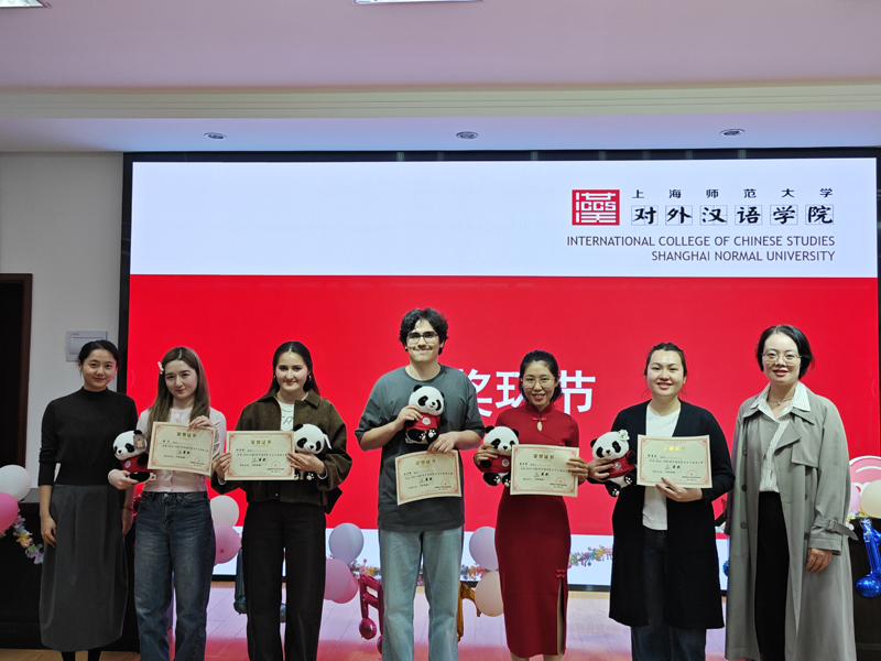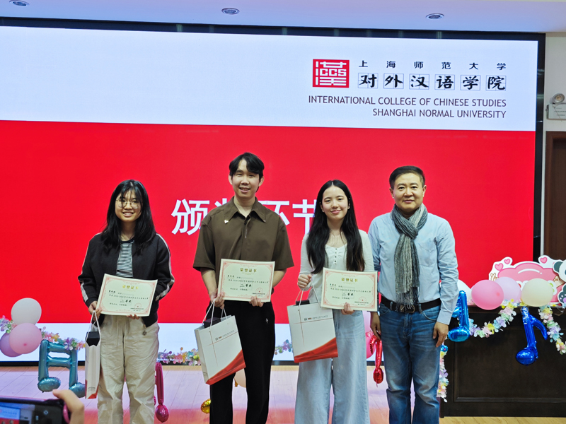 经过激烈的角逐,比赛最终评选出一、二、三等奖。西美那(西班牙)获得一等奖,李天龙(老挝)、王菲花(泰国)、雷忱歆(印度尼西亚)获得二等奖,陈雪晶(印度尼西亚)、张玉香(缅甸)、安吉拉(土库曼斯坦)、亚力斯(土库曼斯坦)、明月(土库曼斯坦)获得三等奖。学院党委书记刘岚老师、学院行政工作负责人刘春光老师、国际学生本科系主任(专业负责人)胡霜霜老师和国际学生工作主管赵晓英老师分别上台为获奖选手颁奖,并对他们表示了衷心的祝贺。