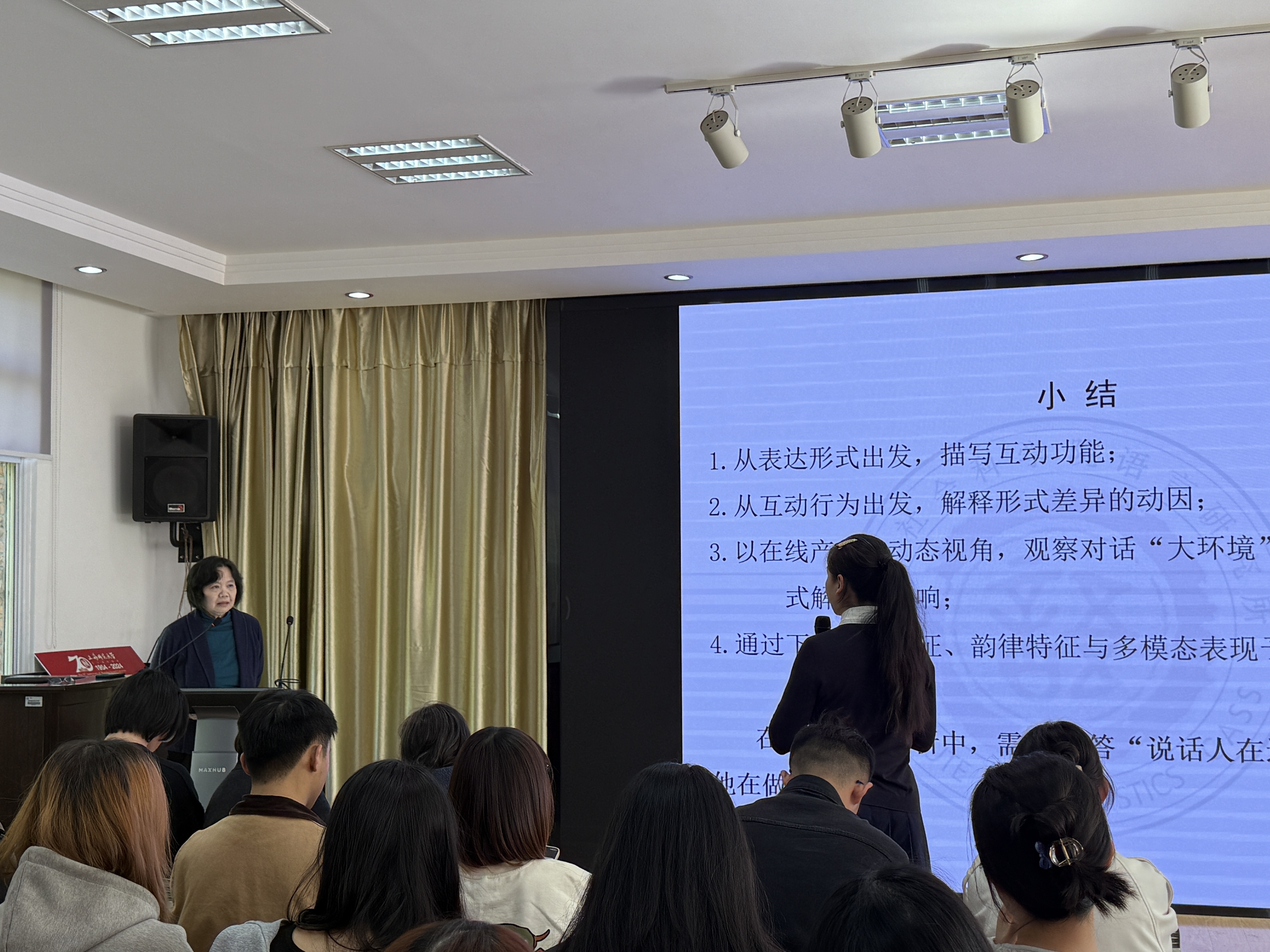 方梅教授从事实出发,列举大量例子,生动形象地为大家展示了互动视角下的虚词用法。这次讲座加深了大家对互动语言学视角下虚词用法的认识,也为今后的汉语教学与研究提供了新的视角。