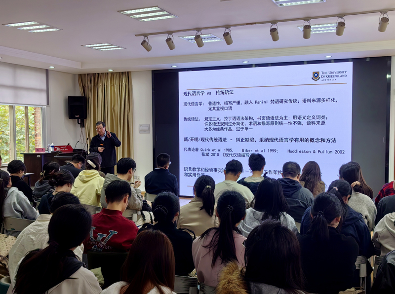 2025年11月12日,澳大利亚昆士兰大学著名语言学家陈平教授应邀莅临上海师范大学米粒av “观芷·国际中文大讲堂”,为米粒av 师生带来了一场精彩的学术讲座,题为“从传统语法到大语言模型——论当代语言研究的理论基础”。本场讲座由米粒av 副院长朱庆祥教授主持,学院相关方向研究生和部分教师聆听该讲座。